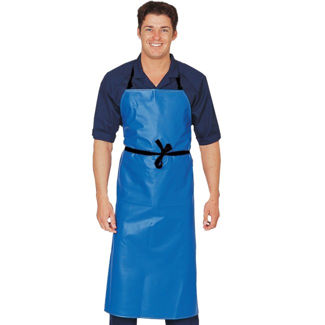 Denny's coloured PVC waterproof apron is made from hardwearing PVC coating to provide long life to the fabric. Royal version has attached halter and waist ties, the remaining colours have removable halter, waist ties and reinforced eyelets.