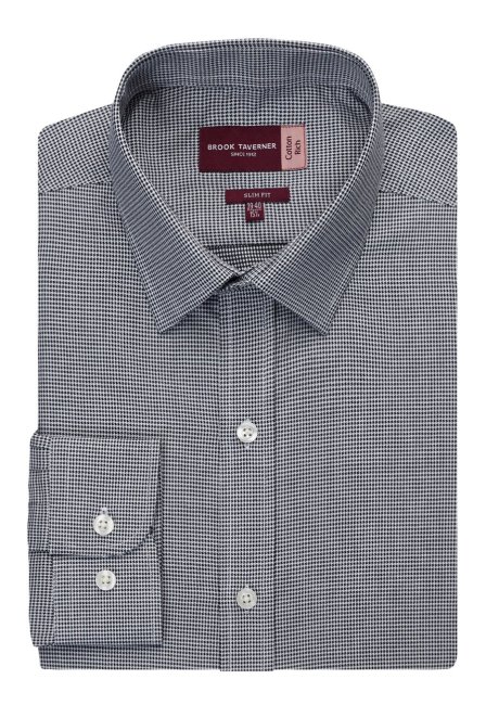 Easy-to-iron slim fit shirt, Effortlessly stylish, twin rear darts for a defined silhouette, Semi cutaway collar, Long sleeve, Houndstooth pattern.