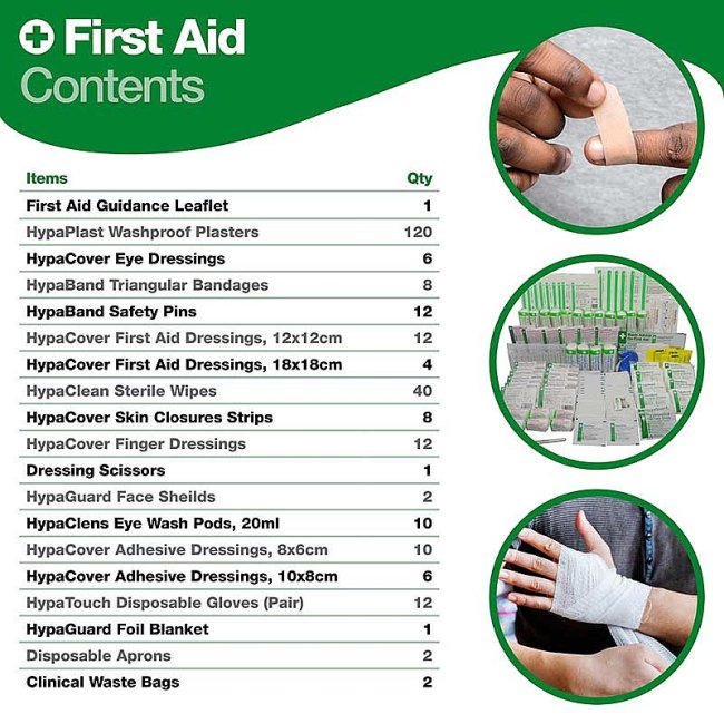 - Includes a surplus of essential first aid items to serve high-demand environments